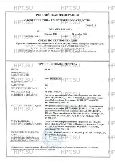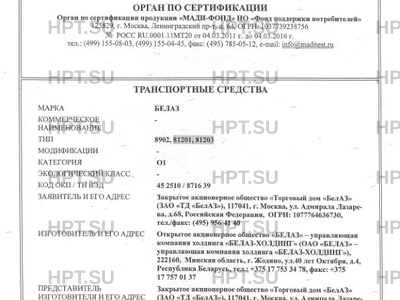 | Представитель изготовителя | Закрытое акционерное общество "Торговый дом "БелАЗ" (ЗАО "ТД "БелАЗ"), 117041, г. Москва, ул. Адмирала Лазарева, д.68, Российская Федерация, ОГРН: 1077764636730 |