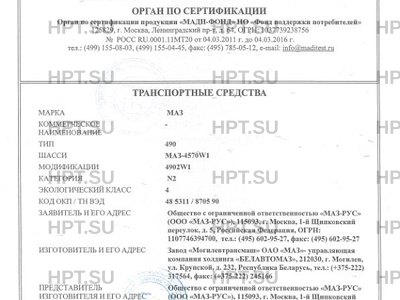 | Заявитель | Общество с ограниченной ответственностью "МАЗ-РУС" (ООО "МАЗ-РУС"), 115093, г. Москва, 1-й Щипковский переулок, д. 5, Российская Федерация, ОГРН: 1107746394700, тел.: (495) 602-95-27, факс: (495) 602-95-27 |