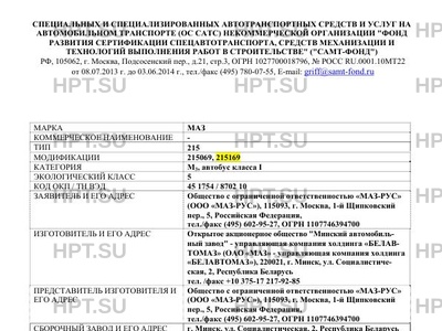 | Представитель изготовителя | Общество с ограниченной ответственностью "МАЗ-РУС" (ООО "МАЗ-РУС"), 115093, г. Москва, 1-й Щипковский пер., 5, Российская Федерация, тел./факс (495) 602-95-27, ОГРН 1107746394700 |