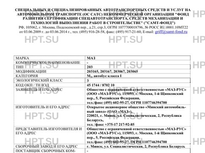 Предприятие-изготовитель Открытое акционерное общество «Минский автомобиль-ный завод» (ОАО «МАЗ»), 220021, г. Минск, ул. Социалистическая, 2, Республика Беларусь, тел. /факс +375-17 217-92-85