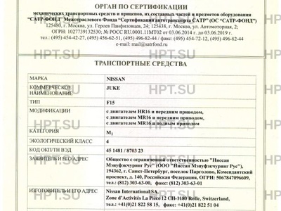 Коммерческое наименование JUKE; F15