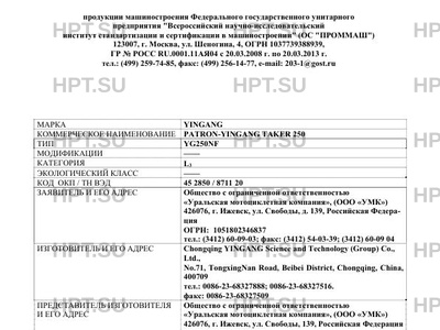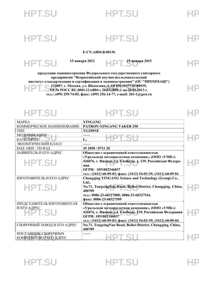 | Коммерческое наименование | PATRON-YINGANG TAKER 250; YG250NF |