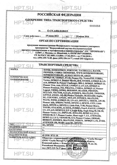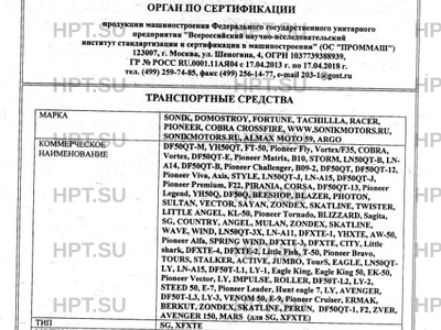 | Марка ТС | SONIK; DOMOSTROY; FORTUNE; TACHILLLA; RACER; PIONEER; COBRA CROSSFIRE; WWW.SONIKMOTORS.RU; SONIKMOTORS.RU; ALMAX MOTO 59; ARGO |