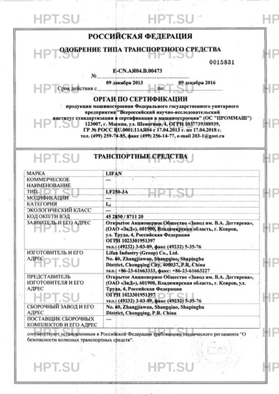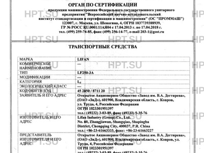 Тип ТС LF250-3A