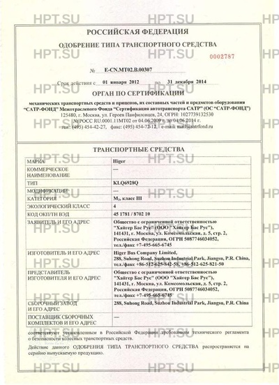 | Заявитель | Общество с ограниченной ответственностью "Хайгер Бас Рус" (ООО "Хайгер Бас Рус"), 141431, г. Москва, ул. Комсомольская, д. 5, стр. 2, Российская Федерация, ОГРН 5087746034052, тел./факс +7-495-665-6745 |
