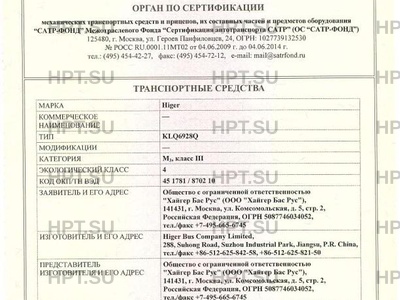 | Коммерческое наименование | —. Тип ТС: KLQ6928Q |