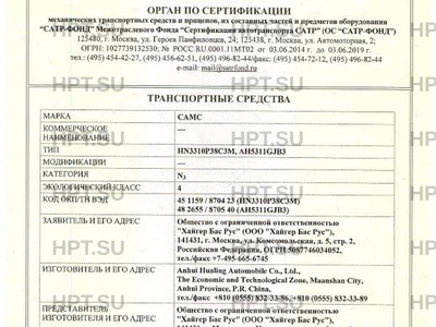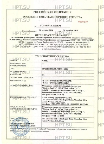 Тип ТС HN3310P38C3M ; AH5311GJB3