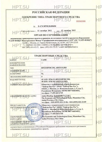 | Предприятие-изготовитель | Anhui Hualing Automobile Co., Ltd., The Economic and Technological Zone, Maanshan City, Anhui Province, P.R. China, тел./факс +810 (0555) 832-33-86, +810 (0555) 832-33-89 |