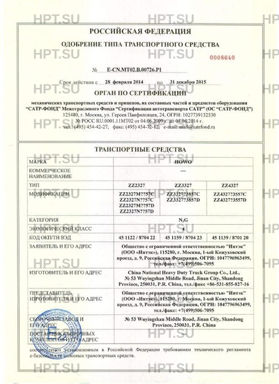 Тип ТС ZZ2327; ZZ3327; ZZ4327
