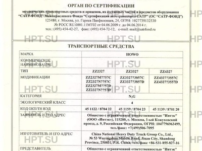 | Марка ТС | HOWO |