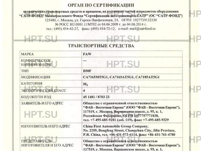 | Предприятие-изготовитель | China First Automobile Group Company, No. 2259, Dongfeng Street, Changchun City, Jilin Province, P.R. China, тел. +86-431-573-6114, факс +86-431-761-4780 |