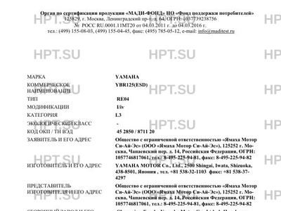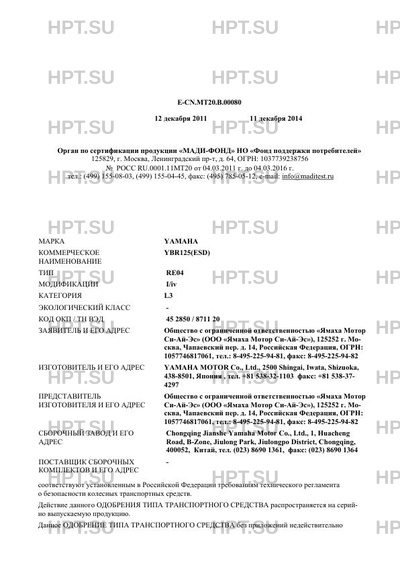 | Коммерческое наименование | YBR125(ESD). Тип ТС: RE04 |