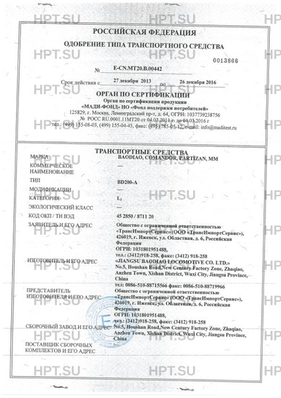 | Марка ТС | BAODIAO, COMANDOR, PARTIZAN, MM |