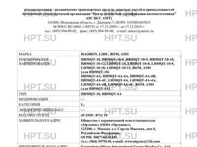 | Марка ТС | HAOBON, LIHU, BOM, AMS |
