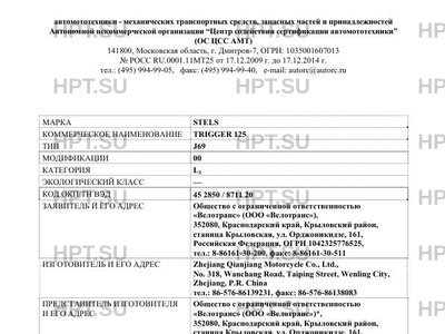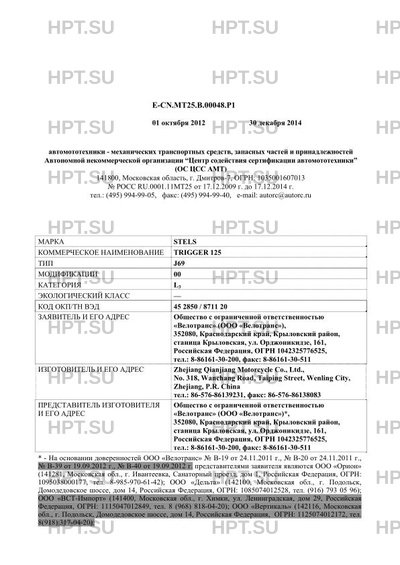 | Коммерческое наименование | TRIGGER 125. Тип ТС: J69 |