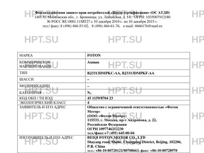 | Заявитель | Общество с ограниченной ответственностью «Фотон Мотор» (ООО «Фотон Мотор») 115533, г. Москва, пр-т Андропова, д. 22, РоссийскаяФедерация ОГРН 1097746252230 тел./факс:+7 (495) 645-00-04 |