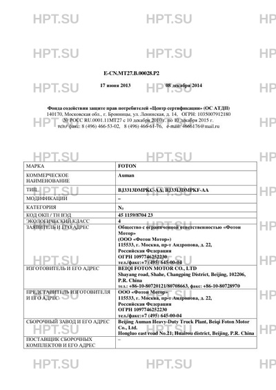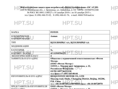 | Заявитель | Общество с ограниченной ответственностью "Фотон Мотор" (ООО "Фотон Мотор") 115533, г. Москва, пр-т Андропова, д. 22, РоссийскаяФедерация ОГРН 1097746252230 тел./факс:+7 (495) 645-00-04 |
