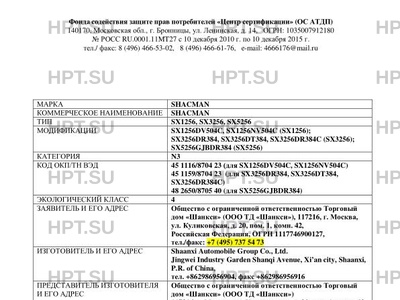 | Коммерческое наименование | SHACMAN; SX1256, SX3256, SX5256 |