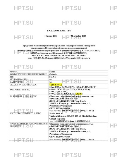 | Заявитель | Общество с ограниченной ответственностью «ФОЛЬКСВАГЕН Груп Рус» (ООО «ФОЛЬКСВАГЕН Груп Рус»), 248926, г. Калуга, ул. Автомобильная, д. 1, Российская Федерация ОГРН 1025005336564 тел. +7 (495) 258-39-01, факс +7 (499) 271-08-75 |