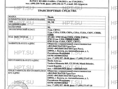 Заявитель Общество с ограниченной ответственностью "ФОЛЬКСВАГЕН Груп Рус" (ООО "ФОЛЬКСВАГЕН Груп Рус"), 248926, г. Калуга, ул. Автомобильная, д. 1, Российская Федерация ОГРН 1025005336564 тел. +7 (499) 957- 00-00, факс +7 (499) 271-07-10