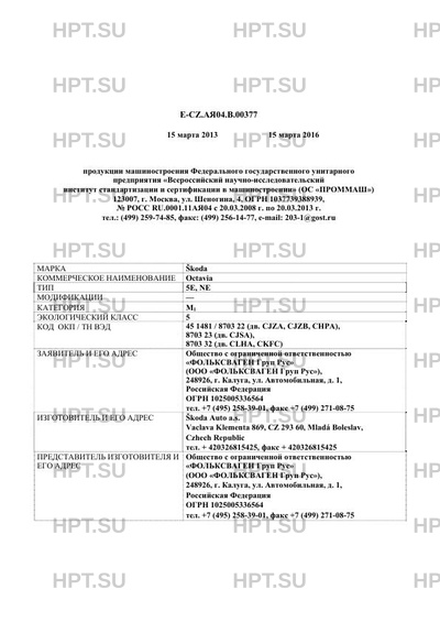 | Марка ТС | Škoda |