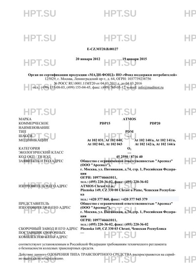 | Коммерческое наименование | PDP15 PDP20. Тип ТС: PDM |