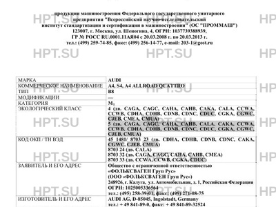Заявитель Общество с ограниченной ответственностью "ФОЛЬКСВАГЕН Груп Рус" (ООО "ФОЛЬКСВАГЕН Груп Рус") 248926, г. Калуга, ул. Автомобильная, д. 1, Российская Федерация ОГРН: 1025005336564 тел.: (495) 258-39-01, факс: (499) 271-08-75