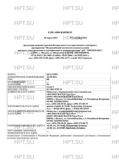 Заявитель Общество с ограниченной ответственностью "ФОЛЬКСВАГЕН Груп Рус" (ООО "ФОЛЬКСВАГЕН Груп Рус") 248926, г. Калуга, ул. Автомобильная, д. 1, Российская Федерация ОГРН: 1025005336564 тел.: (495) 258-39-01, факс: (499) 271-08-75