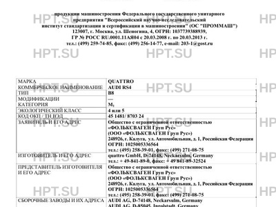 Коммерческое наименование AUDI RS4