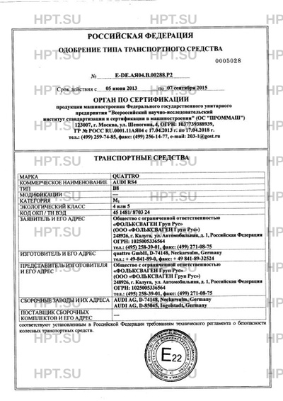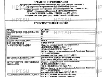 Тип ТС AUDI RS4