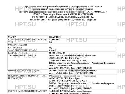 Коммерческое наименование AUDI RS4