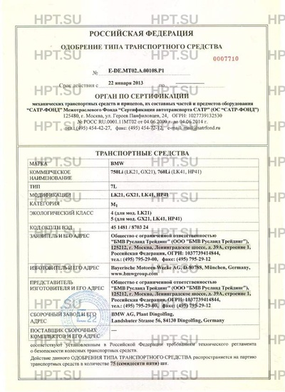 | Тип ТС | 750Li (LK21, GX21),,760Li (LK41, HP41) |