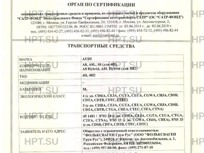 | Тип ТС | A8, A8L, S8 (для 4H), A8 Hybrid, A8L Hybrid (для 4H2) |