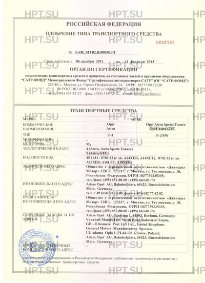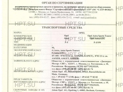 Коммерческое наименование Opel Astra; Opel Astra Sports Tourer, Opel Astra GTC. Тип ТС: P-J; …