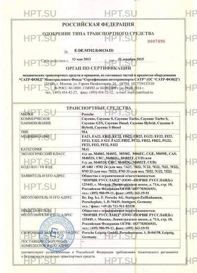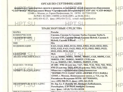 | Тип ТС | Cayenne,,Cayenne S,,Cayenne Turbo,,Cayenne Turbo S,,Cayenne GTS,,Cayenne Diesel,,Cayenne Hybrid,,Cayenne S Hybrid,,Cayenne S Diesel |