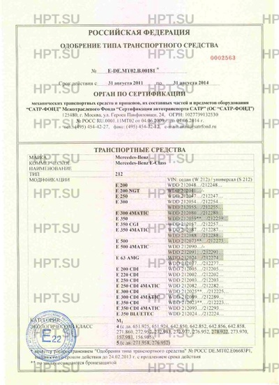 | Коммерческое наименование | Mercedes-Benz E-Class. Тип ТС: 212 |