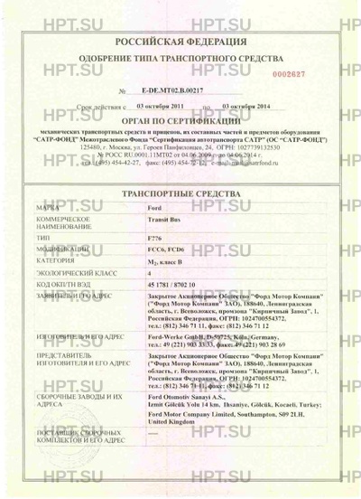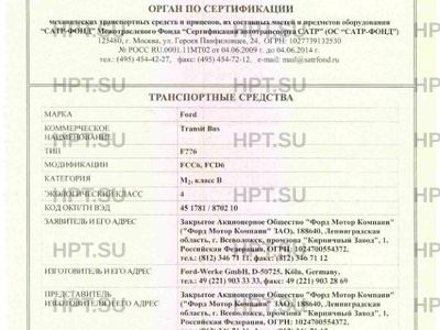 | Коммерческое наименование | Transit Bus. Тип ТС: F??6 |