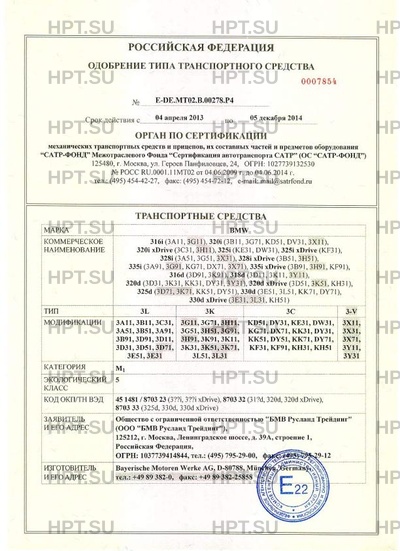 | Заявитель | Общество с ограниченной ответственностью "БМВ Русланд Трейдинг" (ООО "БМВ Русланд Трейдинг"), 125212, г. Москва, Ленинградское шоссе, д. 39А, строение 1, Российская Федерация, ОГРН: 1037739414844, тел.: (495) 795-29-00, факс: (495) 795-29-12 |
