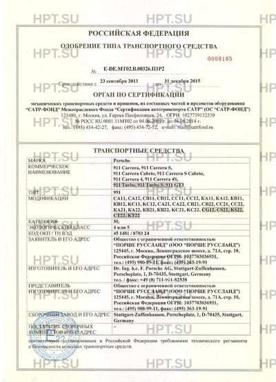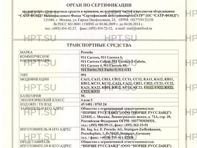| Заявитель | Общество с ограниченной ответственностью "ПОРШЕ РУССЛАНД" (ООО "ПОРШЕ РУССЛАНД") 125445, г. Москва, Ленинградское шоссе, д. 71А, стр. 10, Российская Федерация ОГРН: 1037703036931, тел.: (495) 980-99-11, факс: (495) 363-19-91 |