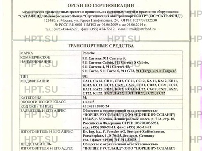 Заявитель Общество с ограниченной ответственностью "ПОРШЕ РУССЛАНД" (ООО "ПОРШЕ РУССЛАНД") 125445, г. Москва, Ленинградское шоссе, д. 71А, стр. 10, Российская Федерация ОГРН: 1037703036931, тел.: (495) 980-99-11, факс: (495) 363-19-91