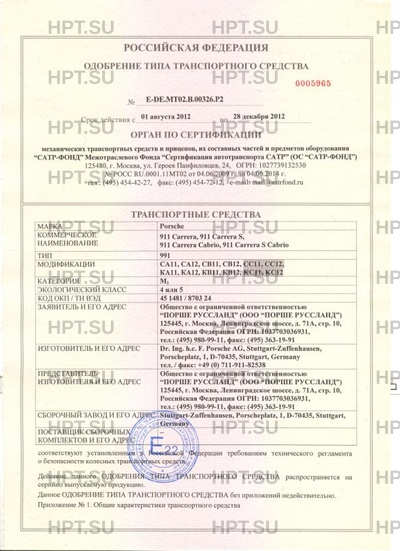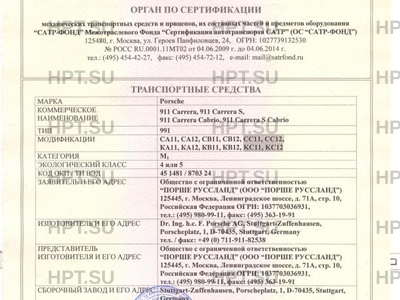 Коммерческое наименование 911 Carrera, 911 Carrera S, 911 Carrera Cabrio, 911 Carrera S Cabrio. Тип ТС: …