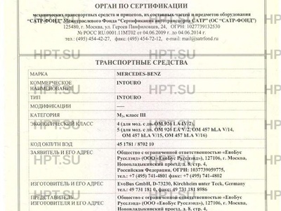 | Коммерческое наименование | INTOURO. Тип ТС: INTOURO |