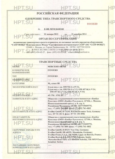 | Предприятие-изготовитель | EvoBus GmbH, DЕ-73230, Kirchheim unter Teck, Germany, тел.: 49 731 181 0, факс: 49 731 181 8986 |