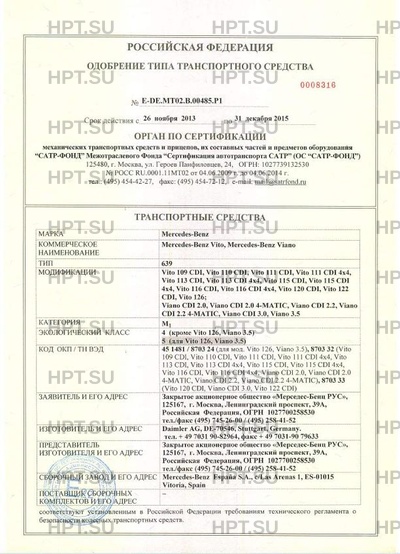 Экологический класс 4 (кроме Vito 126, Viano 3.5) 5 (для Vito 126, Viano 3.5)