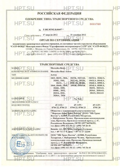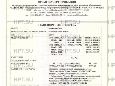 Коммерческое наименование Merced es- Benz Actros. Тип ТС: Actros