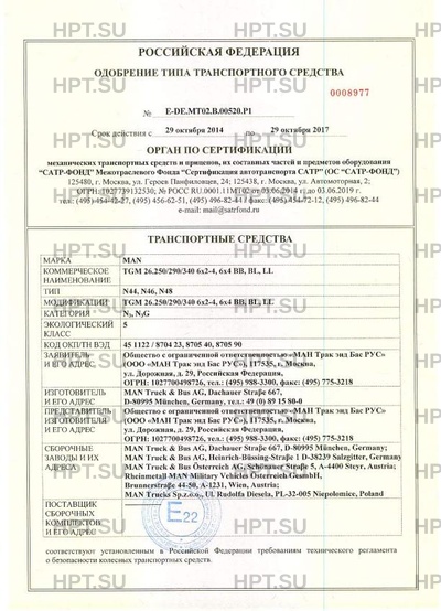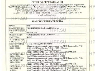 Заявитель Общество с ограниченной ответственностью "МАН Трак энд Бас РУС" (ООО "МАН Трак энд Бас РУС"), 117535, г. Москва, ул. Дорожная, д. 29, Российская Федерация, ОГРН: 1027700498726, тел.: (495) 988-3300, факс: (495) 775-3218