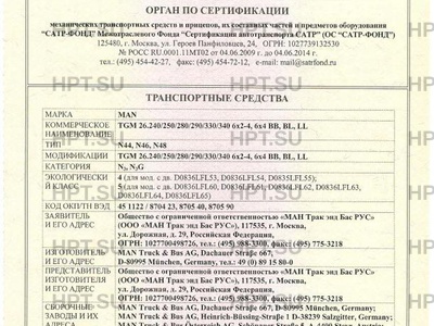 | Коммерческое наименование | TGM 26.240/250/280/290/330/340 6x2-4, 6x4 ВВ, BL LL. Тип ТС: N44, N46, N48 |