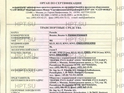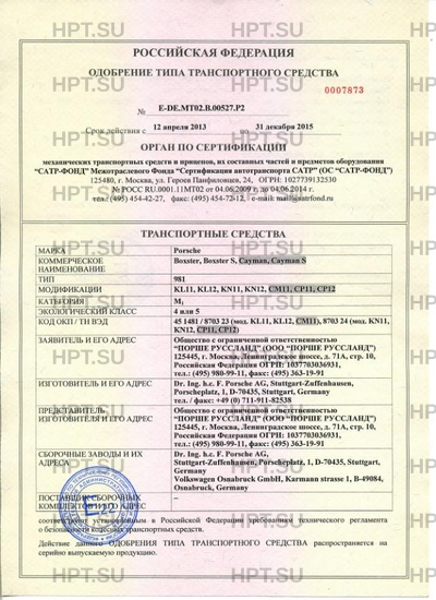| Коммерческое наименование | Boxster, Boxster S, Cayman, Cayman S 981 |