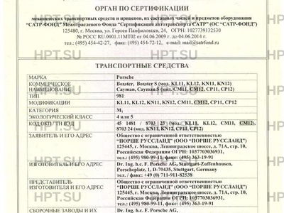 | Тип ТС | Boxster,,Boxster S (мод. KL11, KL12, KN11, KN12),Cayman,,Cayman S (мод. CM11, CM12, CP11, CP12) |