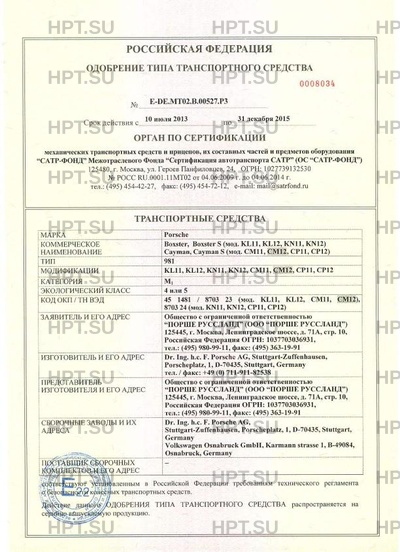 | Коммерческое наименование | Boxster, Boxster S (мод. KL11, KL12, KN11, KN12) Cayman, Cayman S (мод. CM11, CM12, CP11, CP12) |
